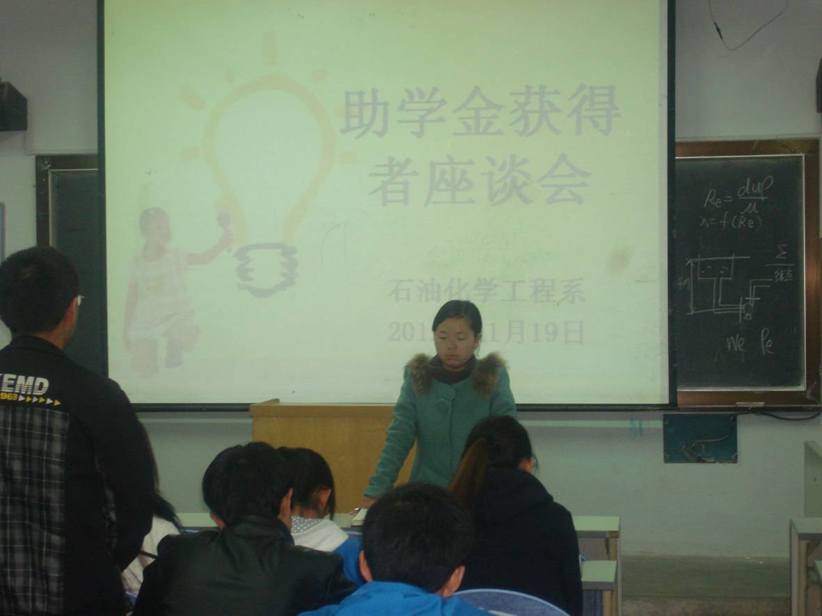 为了切实做好各类奖助学金资助工作,进一步提升我系该项工作的实际效果,引导员工培养自强不息,积极回报社会的精神,以求达到帮助员工完成学业,树立员工的社会责任感的目的,石油化学工程系于11月19日在西区化工楼201教室举办了奖助学金获得者座谈会,此次会议由系辅导员史晓庆老师主持,石化系员工干部,各班团支书及员工代表参加了此次会议。