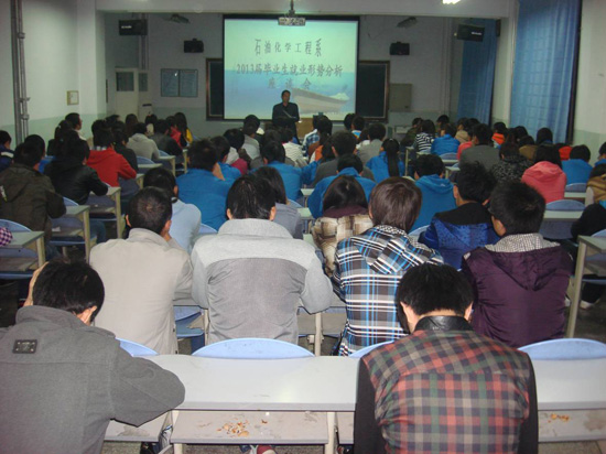 会上,系政治辅导员于爱平老师首先对当前就业政策、企业招聘的相关信息作了解释和说明,并用大量详实的数据对石化系当前就业形势作了分析,结合实际,根据公司在多次各企事业用人单位的合作过程中的经验,对员工在就业技能等多方面进行了生动细致的讲解。紧接着他就石化系13届毕业生各专业、各班截至目前的就业率情况以及当前就业所面临的问题,做了详细的分析及通报。其次,于老师在客观分析当前所面临就业形势的基础上,总结出了当前未就业员工的表象,主要反映在:一是等待好企业;二是看看好地域;三是挑选好岗位;四是相互高攀比;五是比较薪酬待遇。对此现象于老师重点加强了对当前未就业毕业生就业观念的指导,旨在让同学们树立客观、正确的择业观和就业观,帮助员工正确看待就业的现象。