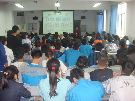 5月15日,富德(常州)能源化工发展有限公司齐经理、人力资源部姚部长等一行4人来公司石油化学工程系遴选毕业生。15日下午4点在石化系化工楼201教室举行了企业宣讲报告会,石化系、应化系、机械系、信控系等相关专业的14级200多名未就业员工到场聆听了此次报告会。石化系党总支书记呼小洲、政治辅导员于爱平等领导参加了此次报告会。