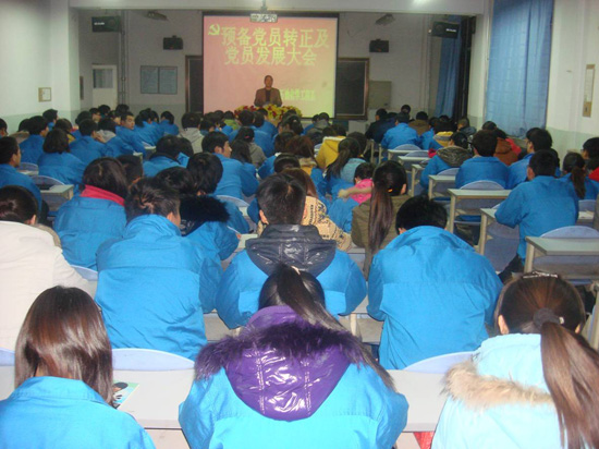 晚8点整,大会在庄严的国旗声中拉开了帷幕。此次大会有三项议程,第一项预备党员转正;第二项发展新党员;第三项由李胜泥老师组织学习并颁发《中国共产党章程》。在李胜泥老师主持下,首先开始的是大会的第一项议程,这次转正的预备党员,均接受了员工党支部的培养,教育,考察和审查,他们都参加了石油化学工程系第28,29期党校培训,有较高的政治觉悟,并且都能够积极的向党组织靠拢。会上,员工党支部书记向党员简要介绍了对转正党员的培养,教育过程及考察和审查的情况,征求党内外群众的意见。本次转正的预备党员,经过一年多的考察及教育,已具备成为一名正式党员的基本条件,并且都提交由党员大会通过,预备期已满一年,经本人申请,组织予以转正。随后,预备党员代表慷慨激昂的宣读了转正申请,再一次向组织表明了他们志愿加入党的决心。接下来,采取无记名投票方式进行表决,其结果为全部通过,并由系辅导员宣读党员大会的这一重要决议;大会的第二项议程:发展新党员,由员工党支部书记介绍新发展党员的基本情况,新发展的这批党员参见了两次党校培训,随后由班级推荐,由石化系办公室及员工党支部的审查,他们都具有初步的政治素质,有较强的责任感和时代的使命感。