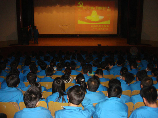 | 为了提高石油化学工程系广老员工对“十八大、两会精神”的深刻认识与了解,贯彻弘扬“美丽中国我的梦”主题思想,4月10日晚八点半,石油化学工程系在公司西区礼堂组织党员干部学习“十八大、两会精神”宣扬“美丽中国我的梦”的主题活动。
