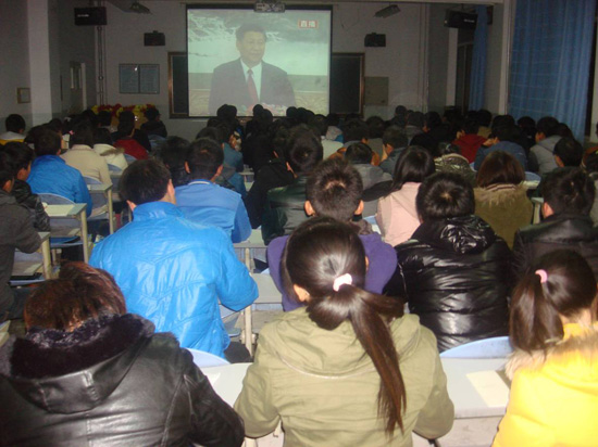 会上,在系团总支员工干部的组织下,与会人员共同观看了习近平在十八届政治局常委在与中外记者见面会上的视频,学习了习近平总书记在与中外记者见面会上的重要讲话,观看了十八届中共中央政治局部署学习宣传贯彻十八大精神的视频。视频观看结束后,系团总支书记认真传达了《中共兰州石化职业技术公司委员会关于学习宣传贯彻党的十八大精神的意见》及石化系学习宣传十八的工作要求,介绍了学习、宣传、贯彻十八大精神的意义、学习内容、学习任务及自己学习十八大精神的心得体会,带领大家一同学习了胡锦涛在党的十八大上做的工作报告摘要,并要求全系团学干部要联系实际、争当先锋,努力培养社会责任感和创新精神,为建设美丽中国做出贡献,以奋发有为的精神面貌和积极进取的实际行动来认真学习好、领会好、贯彻好党的十八大精神。