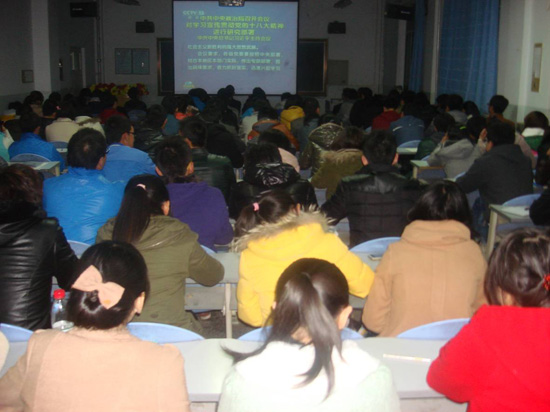 | 为了更好地学习、宣传、贯彻党的十八大精神,10月25日晚,石油化学工程系在化工楼201教室组织员工干部深入学习了党的十八大精神,石化系团总支员工会干部及各班班干部共100多人参加了会议,会议由石化系团总支书记主持。