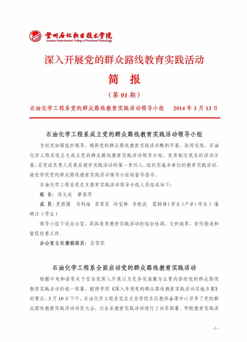 二是通过制作并上报每周一期的“石油化学工程系深入开展党的群众路线教育实践活动简报”全面反映我系教育实践活动的工作动态和活动成效。