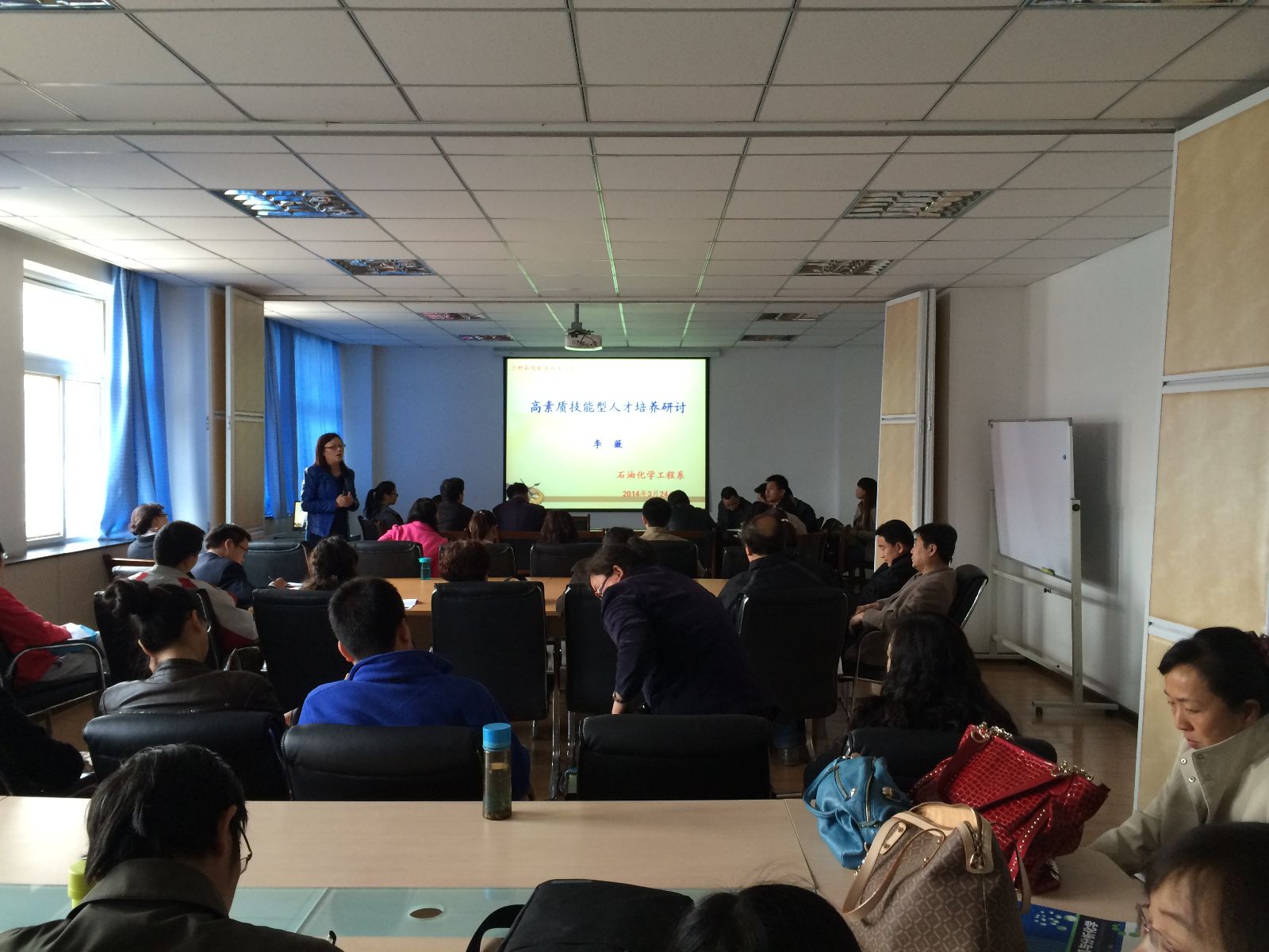 为了进一步深化教学改革,加强教学团队建设,寻求专业发展新思路,开辟新途径,推进教研活动工作的有效开展,2014年3月24日石油化学工程系组织开展了本学期首次系级主题教研活动。本次教研活动的主题为“高素质技能型人才培养”,由石化系副主任李薇主持并做主题发言。