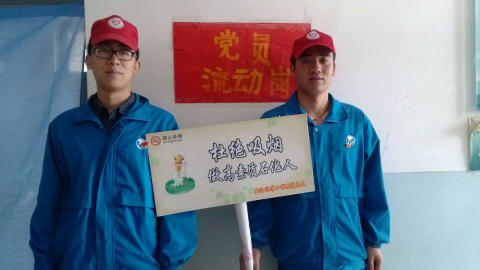 老员工党员开展“30小时义工活动”,即员工党员积极参加志愿者服务行动,预备期内完成30小时义工活动,并对党员进行考核评价,作为党员转正的考核内容,这体现了石化系积极探索员工党建工作的新思路、新途径、新方法,创新了老员工青年志愿者的社会实践活动的有效机制。结合群众路线教育活动,我们充分发挥党员建立的这个平台,从员工管理的实际出发,将党员、预备党员志愿者编为控烟工作督察员,设立党员流动督查岗位,向同学们宣传吸烟有害健康的科学知识,阐述创建全面无烟校园的目的、意义,号召同学们把创建全面无烟校园作为自觉行为,提高自我保健意识和安全防范能力。