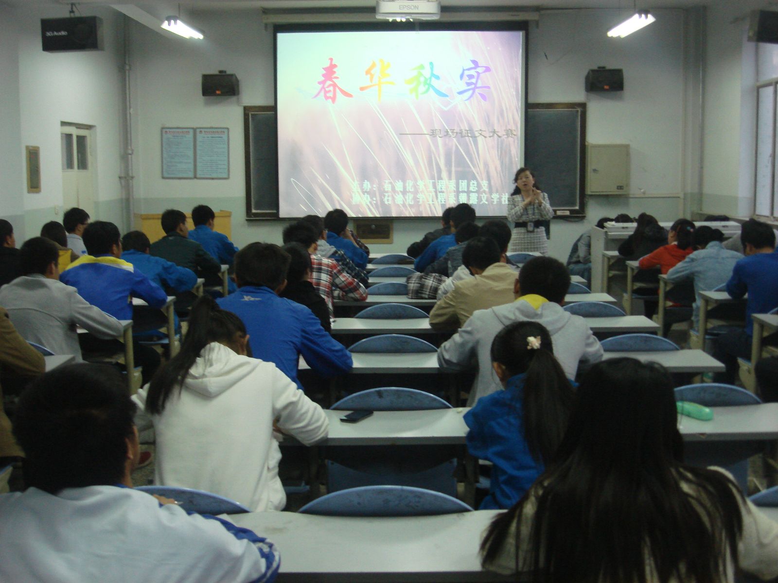 为了充实同学们的课外生活,为文学爱好者提供展示自我的平台,3月27晚7点,石油化学工程系朝露文学社于化工楼201教室举办了“春华秋实”现场征文大赛春季赛。