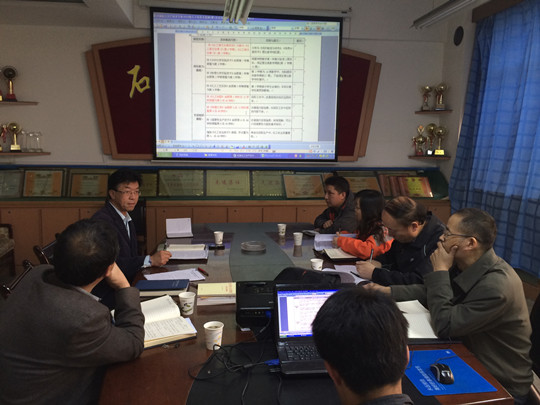石化系各专业带头人分别展示了本专业的人才培养方案修订说明,重点汇报2014年人才培养方案的改动部分,各位老师对进程表中的每一项内容进行细致审定,逐一查找不足与错误,并及时修订改正。