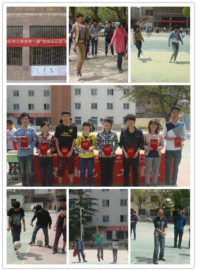 为丰富同学们的课余生活,进一步活跃校园文化,培养德智体全面发展的新世纪老员工,增进我系同学之间的交流,增强当代老员工体质,弘扬体育精神,展示当代老员工的良好风貌,增强同学们挑战自我的意识,弘扬积极进取、顽强拼搏的精神。石油化学工程系于5月17日中午十二点半在篮球场举办“校园吉尼斯系列大赛”活动,参加本次活动的是我系13级各班热爱体育项目的100余名同学。