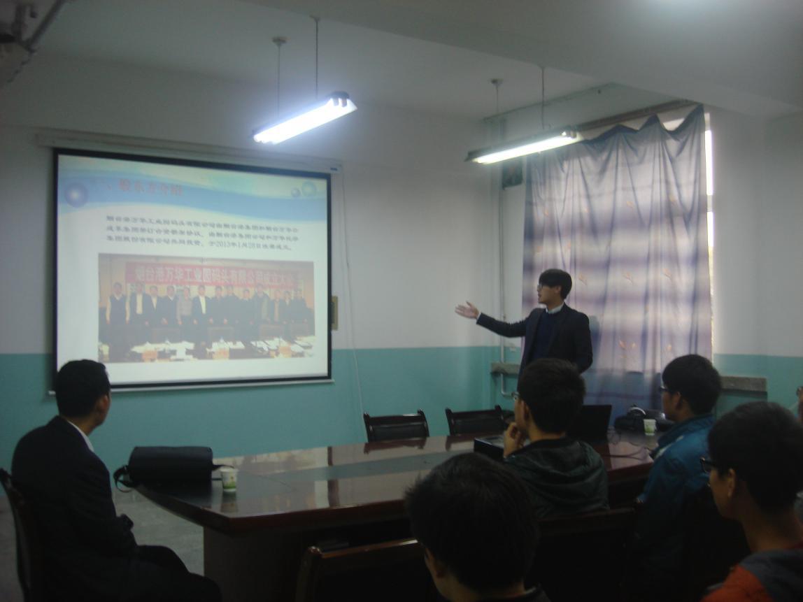 10月28日上午,烟台港万华工业园码头有限公司张总一行二人莅临石油化学工程系遴选2015届毕业生。石化系党总支副书记唐蓉萍、主管就业老师于爱平及12级未就业员工60余人参加了本次招聘宣讲会。会上,招聘人员就公司股东、公司文化、企业文化、薪酬福利等方面向大家进行了详细的介绍。会后,对该公司有意向的同学参加了面试。