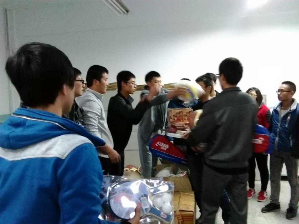 为了丰富校园文化、营造良好的校园文体活动氛围、公司给各班配发了体育用品。11月2日晚,石油化学工程系召集13、14级各班班长、体育委员,将这些体育用品向各班发放。