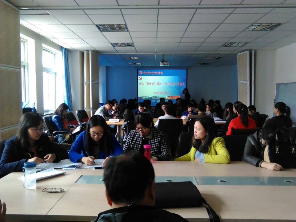 3月21日,公司第五届二次教职工代表大会暨第四届二次工会会员代表大会在公司综合服务楼石化厅隆重召开。为了贯彻会议精神,石化系于3月23日下午在东区备课中心传达了“两代会”精神,学习了年度工作要点。