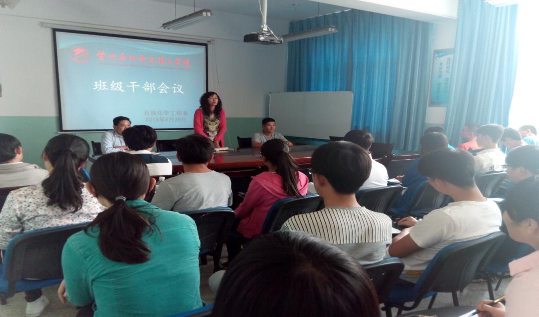 会议伊始,石化系辅导员李胜泥通报了石化系近期早操、晚自习、公寓管理等方面存在的问题,对员工干部的行为表现做了讲评,要求各级干部以身作则做好干部表率作用,认真履行干部职责,做好班级管理工作。之后,系党总支副书记唐蓉萍就“如何当一名员工干部”做了耐心细致的讲解。一是明确了班干部在班级管理者地位,如何引导员工增强学习风气,如何秉持公正、公平,认真履行班级管理职责。二是用合理的处事方法,积极为同学们服务,做好老师和同学们之间的桥梁作用。三是用良好的精神风貌迎接就业。同时,各干部要切实反映班级问题,针对管理问题要做到“两查”,力争做到使同学们理念认同,行动服从。最后,石化系12级班长郭超鹏同学进行了班级管理经验交流,他结合自身管理经验建议各班干部提高个人素质,处事公正、透明,加强和同学们的交流,以“己所不欲勿施于人的态度,积极为同学们服务。