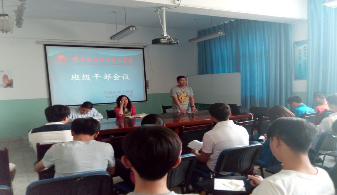会议伊始,石化系辅导员李胜泥通报了石化系近期早操、晚自习、公寓管理等方面存在的问题,对员工干部的行为表现做了讲评,要求各级干部以身作则做好干部表率作用,认真履行干部职责,做好班级管理工作。之后,系党总支副书记唐蓉萍就“如何当一名员工干部”做了耐心细致的讲解。一是明确了班干部在班级管理者地位,如何引导员工增强学习风气,如何秉持公正、公平,认真履行班级管理职责。二是用合理的处事方法,积极为同学们服务,做好老师和同学们之间的桥梁作用。三是用良好的精神风貌迎接就业。同时,各干部要切实反映班级问题,针对管理问题要做到“两查”,力争做到使同学们理念认同,行动服从。最后,石化系12级班长郭超鹏同学进行了班级管理经验交流,他结合自身管理经验建议各班干部提高个人素质,处事公正、透明,加强和同学们的交流,以“己所不欲勿施于人的态度,积极为同学们服务。