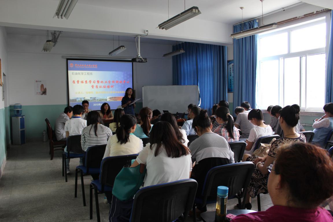 为了使石化系教师深入了解化工分析测试中心资质认定评审准则,更好地达到管理要求和技术要求,6月8日下午,石油化学工程系在石化楼309会议室开展质量体系学习暨化工分析测试中心资质认证培训,石化系全体教职工约50余人参加了此次培训。
