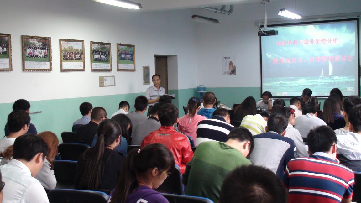 随后系辅导员用详实的数据对目前2016届毕业生就业形势、政策规定及企业选人、用人的标准、要求等情况做了详细的解释。针对毕业生在就业单位选择上出现的从众心理、攀比心理、等待心理等主要问题,建议班主任以班级宿舍为整体,逐一了解员工就业动向,要求他们能够居安思危,端正态度,树立良好的就业观,并希望同学们随时关注公司就业网站,切实保证同学们及时就业。辅导员还对大三员工在日常管理中存在的问题做了强调,希望班干部能够积极配合班主任的工作,合理的利用手中权力,为班级在校的同学做榜样。