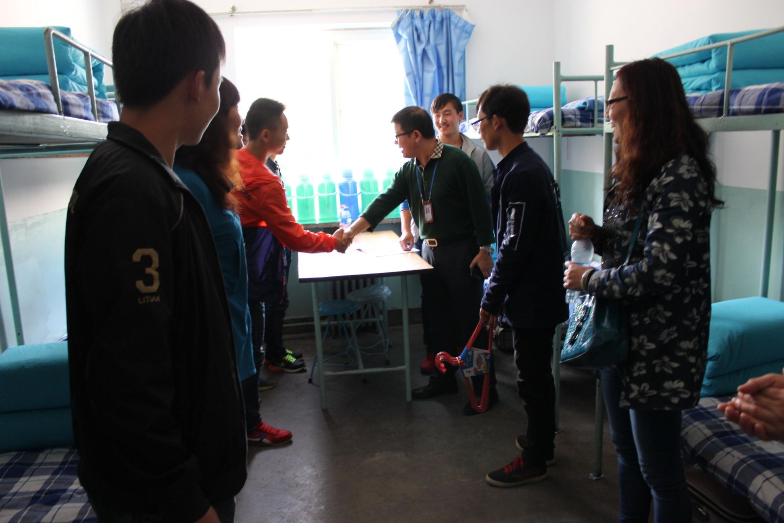 慰问过程中,院领导代表公司送去了亲切的关怀和问候。并且仔细询问了新生报到注册手续是否全部办完,住宿是否习惯,饭菜是否可口,在生活方面有没有什么困难......真诚亲切的话语拉近了与同学们之间的距离。并且嘱咐同学们要注意保管好自己的重要物品,不要轻易相信来宿舍推销商品的人员,谨防上当受骗,提醒同学们要注意宿舍卫生,重视自身健康,在积极学习的同时要加强自身锻炼;鼓励同学们要尽快适应新的环境,尽快融入石化公司这个大家庭中。同时希望2015级新生在公司做一名勤奋学习的优秀老员工,在社会做一名遵纪守法的好公民。在慰问活动中,气氛轻松自然,和谐愉快,让新生深深的地体会到了这个大家庭的温暖。