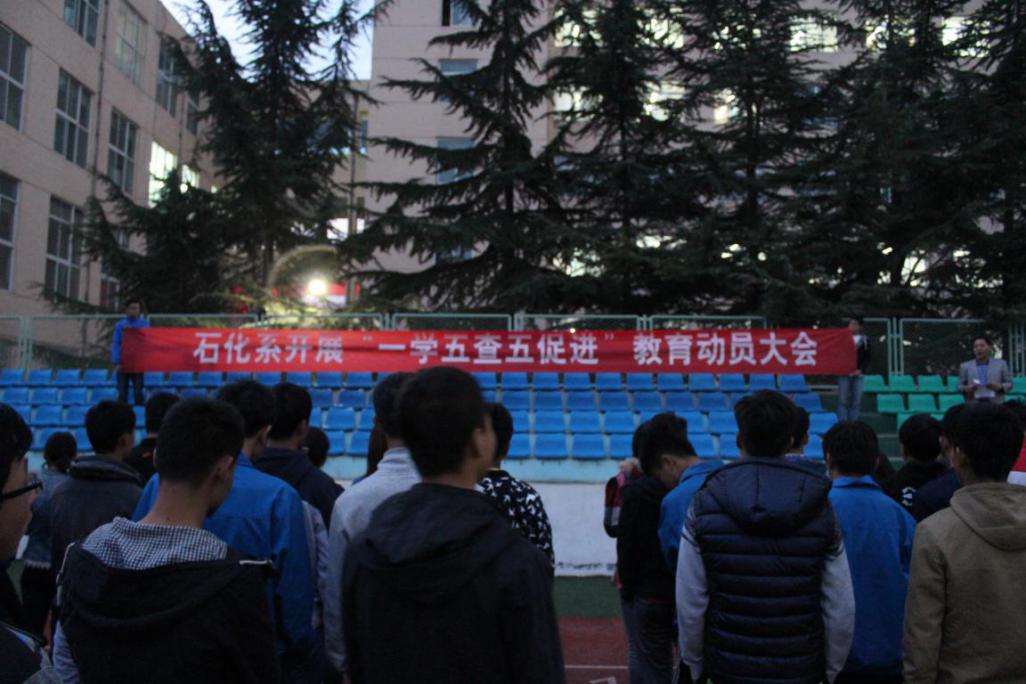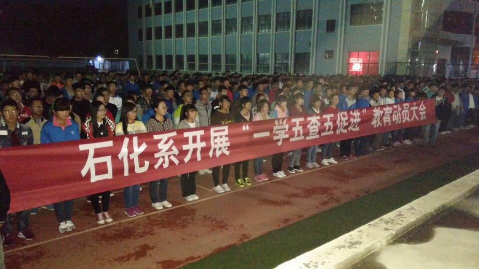 为实现公司2015年持续推进员工教育管理服务,加强平安校园建设的总体目标,进一步加强员工思想政治教育、员工日常管理及各项服务工作,充分发挥各级员工工作人员的主观能动性。根据公司工作安排,石油化学工程系将开展为期一个月的“一学五查五促进”主题教育活动。