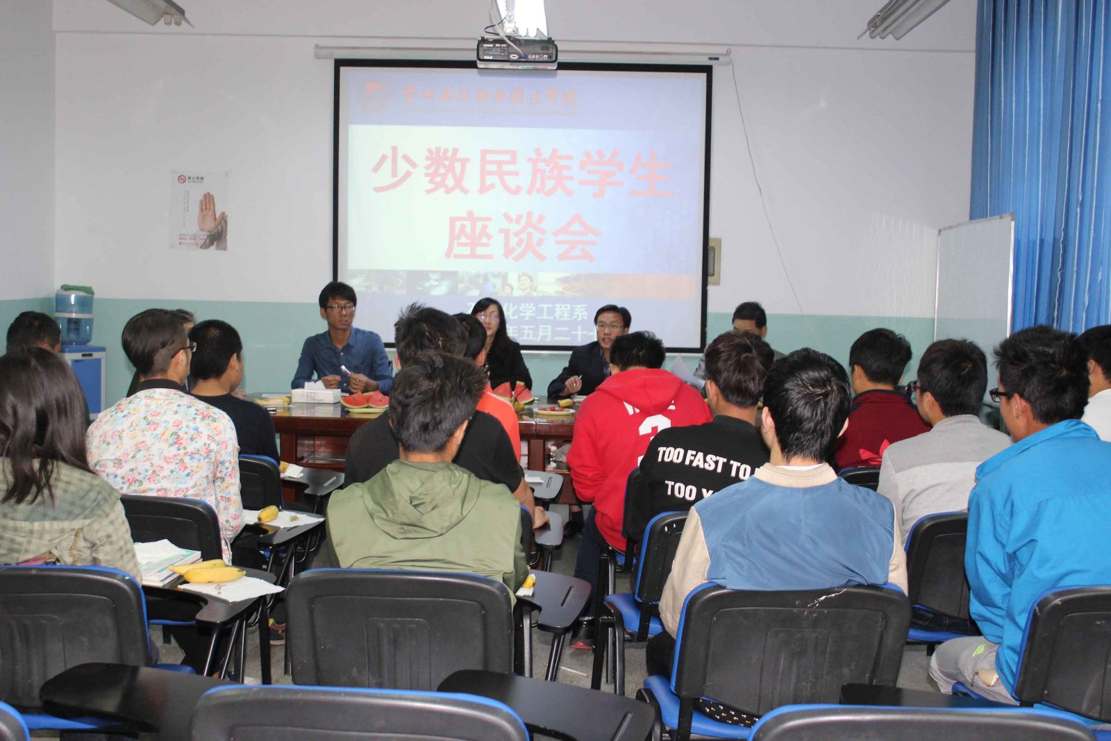 为了解少数民族员工在校生活、学习的情况,加强沟通和交流,推进和谐校园的建设,5月27日,石油化学工程系在化工楼309召开了少数民族员工座谈会,石化系党总支副书记唐蓉萍、夏德强,系辅导员出席了此次座谈会,全系14、15级20位少数员工参加本次座谈会。