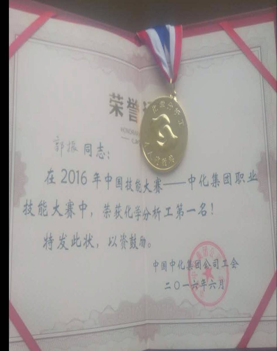 据悉,郭振和王世聪同学在公司学习期间,于2012年曾代表甘肃省参加全国职业院校技能大赛,郭振获得“渤化杯”工业分析检验赛项团体三等奖,王世聪获得化工生产技术赛项团体三等奖,这充分体现了公司在高技能人才培养方面的优势和特色。