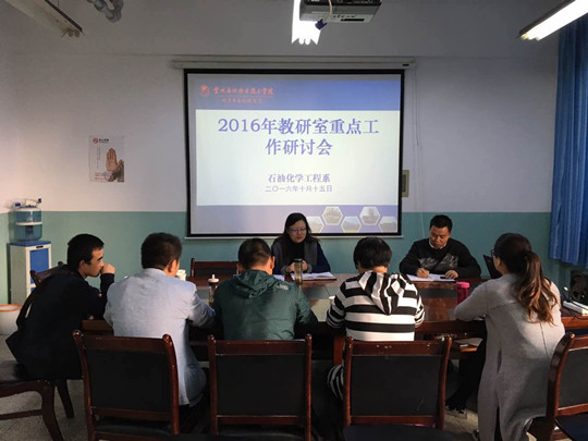 为了顺利完成公司2016年重点工作,石油化学工程系于2016年10月15日召开教研室主任会议,主要针对2016年公司重点工作进行认真研讨,会议由石化系教学主任李薇主持,教研室主任参加了会议。