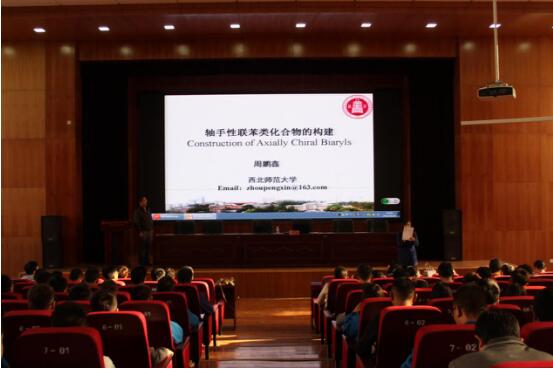10月21日下午4点,应石油化学工程系邀请,西北师范大学副教授周鹏鑫来访我系,并作《轴手性联苯化合物的构建》专题报告。石化系15级、16级共360余名同学参加了此次报告会。