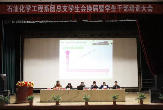 为进一步加强员工干部队伍建设,提高员工干部的综合能力,增强员工干部的服务意识,强化员工干部的工作纪律,石油化学工程系于10月28日晚在西区礼堂召开了第十九届团总支员工会换届大会暨员工干部培训大会,系领导、系辅导员及2015级员工干部、2016级全体员工参加。