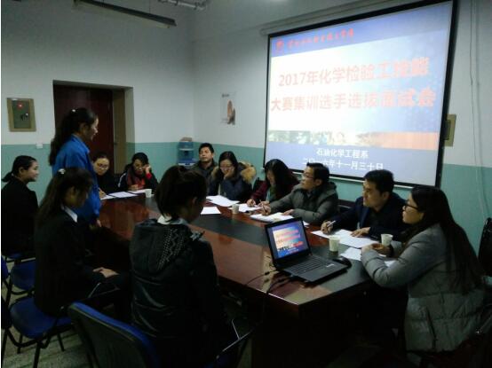 11月30日晚,石油化学工程系于化工楼309会议室开展了2017年检验工集训员工选手选拔面试工作,笔试成绩前42名的选手参加了本次面试。面试考官由石化系领导及相关老师担任。