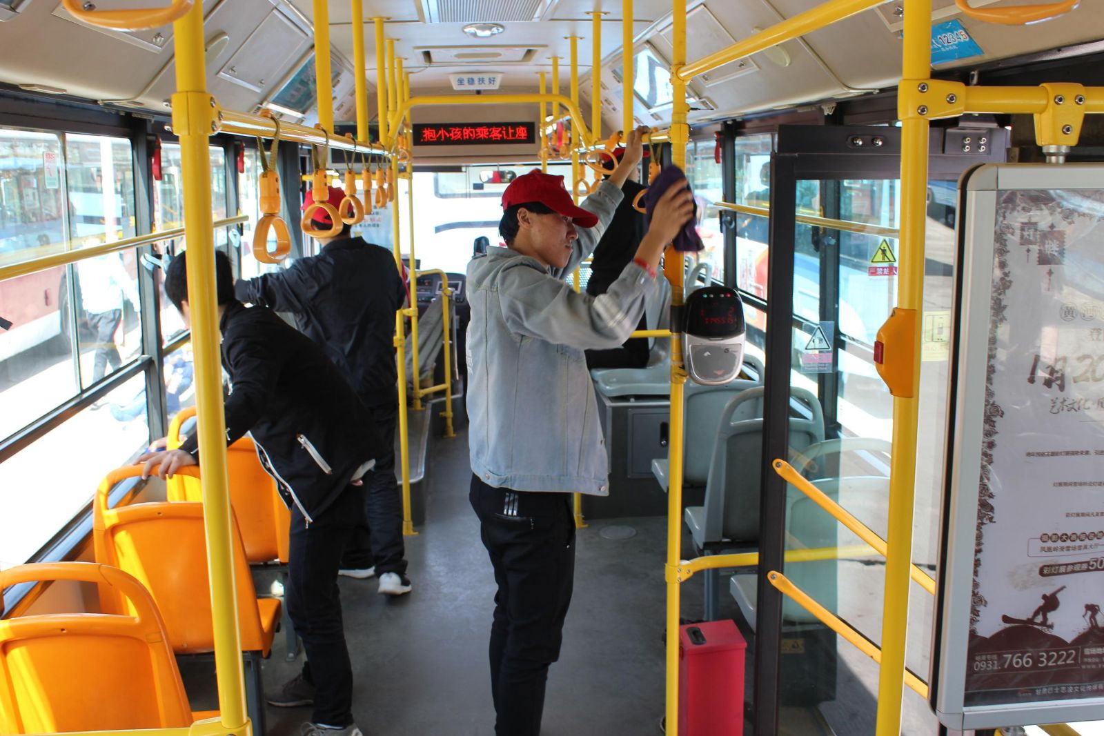 下午两点的天气稍微有点热,但这并没有影响到同学们的积极性。活动一开始,同学们便以积极的态度和饱满的热情投入到了劳动中。有的同学提水,拖洗公交车的地板,对车内凳子和窗户上的灰尘进行了仔细的擦拭,重点对车内的每个死角进行了彻底的清理;有的同学则帮坐公交车的人提行李箱,搀扶行动不便的老人上车。经过两个多小时辛勤劳动,车站的每一辆公交车都焕然一新,同学们的辛苦劳动赢得了车站工作人员和乘客的一致好评。本次志愿服务活动不仅让同学们体会到了环卫工人的辛苦,提高了员工的环保意识,更重要的是,磨练了同学们吃苦耐劳与团结合作精神,提高了员工热爱劳动、热爱公益事业的公德意识。