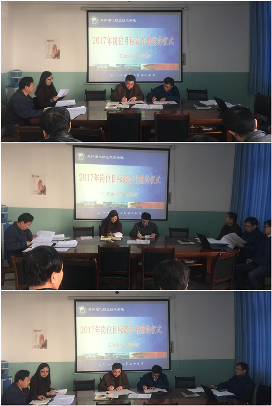 根据公司2017年度工作目标签订的相关要求,beat365在线官网入口于3月27日下午进行2017年度工作目标责任书签约,签约仪式由石油化学工程系经理李薇主持,全体教职工参加了会议。结合2017年度工作目标,各教研室对目标进行层层分解,细化管理,责任到人。 本次签约分为3个层次:经理与教研室主任进行教研室年度目标责任书的签订;经理与教职工进行个人年度目标责任书的签订;党总支书记与党总支副书记、经理助理、班主任、辅导员进行岗位目标责任书的签订。