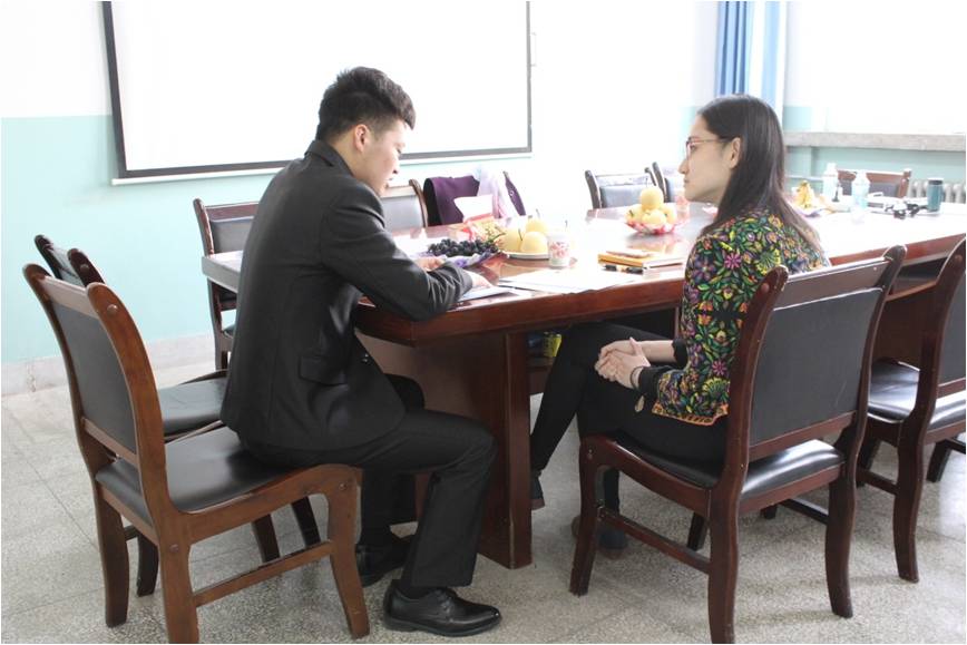宣讲会上,企业领导通过PPT的形式向同学们详细介绍了企业的地理位置、企业文化、业务板块、企业优势,重点说明了薪资待遇、社保福利、晋级机制及招聘计划等情况。随后,企业就部分问题与同学们进行沟通交流,同学们对企业有了更加全面的认识。会后,有意向的同学向企业投递了自荐材料,经过初步筛选,面试工作在石化楼会议室进行。