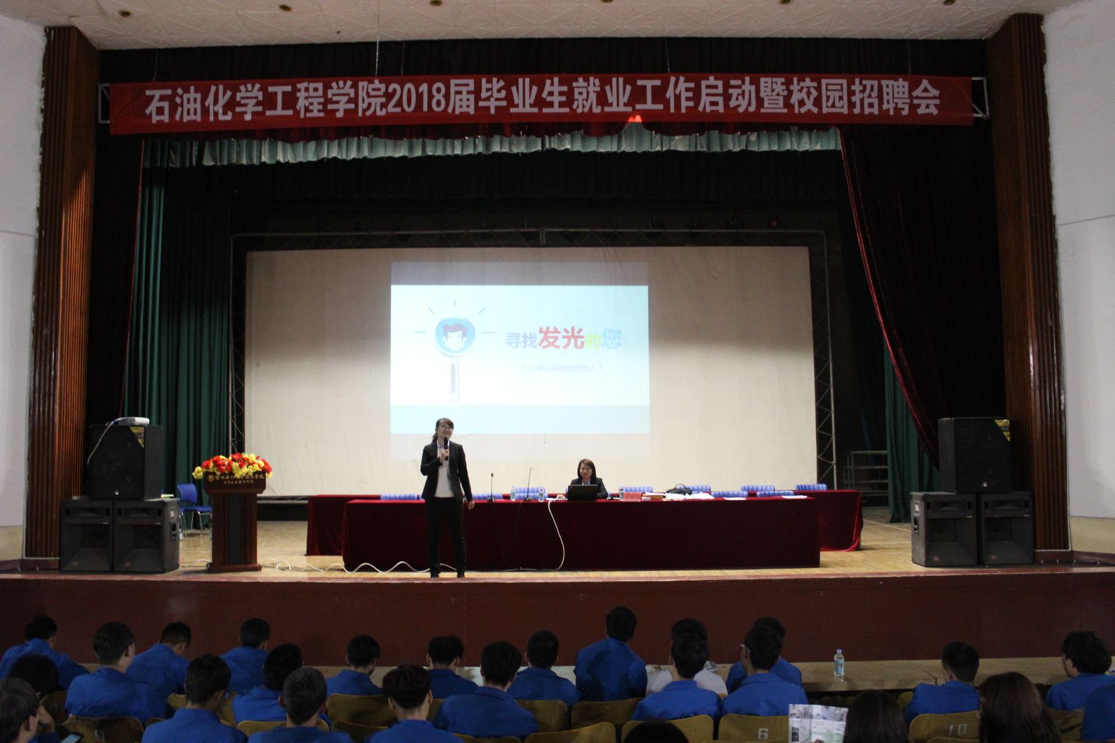 5月4日,福建申远新材料有限公司人事部陈丽烽经理一行前来beat365在线官网入口遴选毕业生。企业在西区礼堂召开了招聘宣讲会,石化、应化、机械、电子等公司的2018届毕业生参加了此次宣讲会。