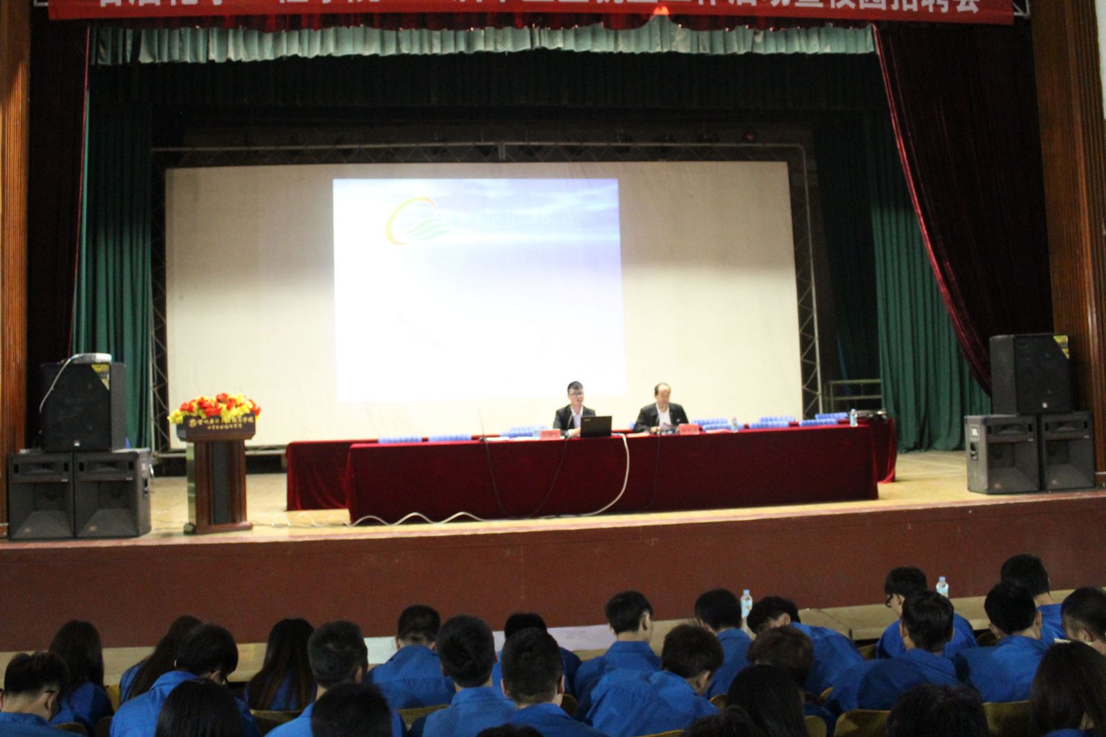5月4日,新疆超源化工有限公司人事部经理、公司杰出员工闫明录和人事部干事、公司印刷系毕业生雷德宏一行,前来beat365在线官网入口遴选毕业生。中午,公司领导、辅导员及石化、应化、印刷、人文等院(系)的2018届毕业生在西区礼堂聆听了企业宣讲会。