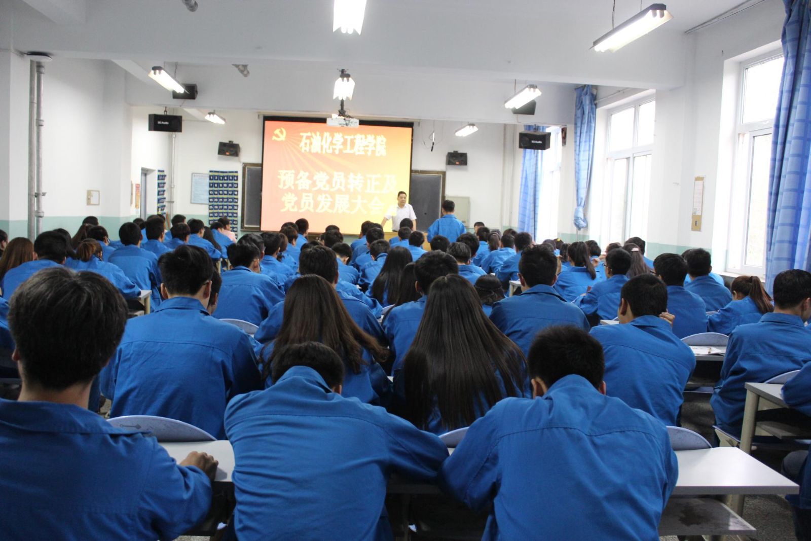 活动分三个内容进行,一是对预备期满的61名预备党员进行转正,预备党员宣读了自己的转正申请书,表明了自己的入党决心,汇报一年来个人的学习、生活、工作和思想情况,表示要不断追求进步,学习党的知识,积极参加公司开展的争先创优活动,切实发挥党员的先锋模范作用,为公司的发展建设做出自己的贡献。最后大会通过无记名投票的方式,对61名预备党员能否按期转正进行了表决,一致通过此61名预备党员按期转为中共正式党员。二是发展新党员,孙凯同学代表52名重点培养对象阐述了自己对党的认识,表达了自己积极向党组织靠拢的迫切愿望。接着入党介绍人对重点培养对象的表现进行了介绍和评价,并表明了自己的意见。通过无记名投票,一致同意吸收52位重点培养对象为预备党员。刘凯锋同学代表新党员向党组织表达了自己的决心,表示在今后的学习、工作、生活中不断提升自己的思想政治修养,不断提高自己为人民为同学服务的本领和能力,领时代风气之先,展员工党员风采。三是全体党员进行了庄严宣誓,新党员面向党旗举起右手,宣读了自已神圣的誓言,老党员在党旗下重温入党誓词,身受教育。最后,赵立祥对新发展的党员提出了希望和要求,希望新党员要继续加强学习,不断加强党性修养提高政治素质,真正做到思想上入党,行动上入党,做一名合格的共产党员。
