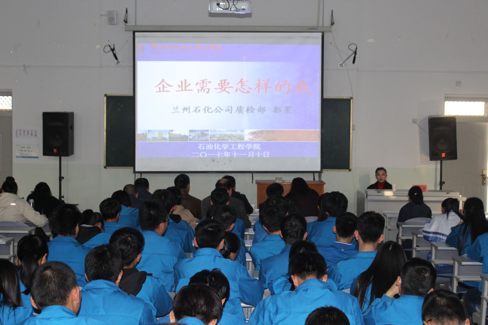 11月10日下午,beat365在线官网入口邀兰州石化公司质检部郭星于西区主教学楼第二阶梯教室作《企业需要怎样的我》专题讲座。本次讲座由beat365在线官网入口经理李薇主持,兰州石化公司专家郭星主讲。