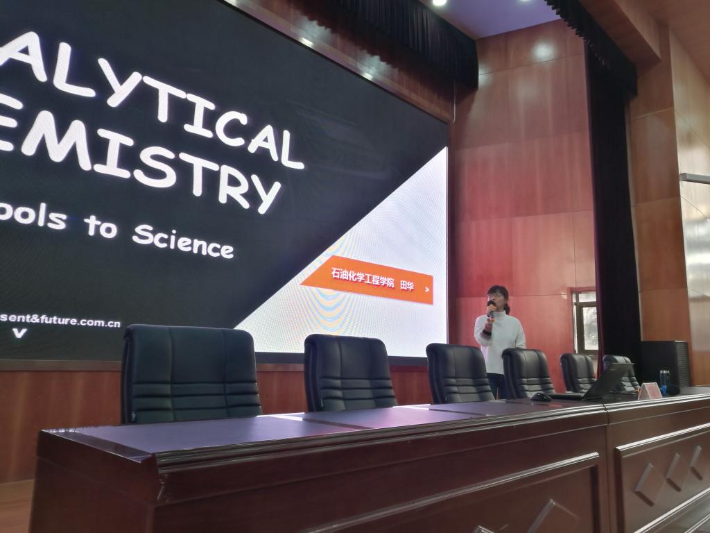 大会伊始,田华博士讲到从科学到工具的发展是一个过程,需要不断的去探索。在科学领域,工业分析是分析化学在工业生产上的具体应用,通过工业分析将化工原料最终应用到科学工具中去。随后,田华博士从三个方面给同学们说明了工业分析在科学工具领域上的发展,充分说明了从科学到工具的发展,工业分析做出了巨大的贡献。最后,田华博士就工业分析与科学工具二者之间的关系做了进一步的阐述,为此次讲座做了一个分析性的总结。