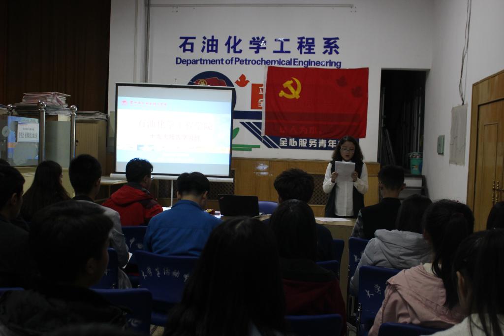 公司党委委员、组织(人事)部部长刘兴勤带领大家共同学习了十九大报告。他明确指出:党的十九大,是在全面建成小康社会决胜阶段、中国特色社会主义发展关键时期召开的一次十分重要的大会。承担着谋划决胜全面建成小康社会、深入推进社会主义现代化建设的重大任务,事关党和国家事业继往开来,事关中国特色社会主义前途命运,事关最广大人民根本利益。紧接着,刘兴勤从党的十九次全国代表大会简介及重要意义,十八届一中全会到七中全会重点回顾,十九大报告内容精解,做合格党员、不忘初心、永远跟党走等四个方面进行全方位讲述。期间,他重点对党的十九大内容和意义进行了详细阐述,并通过讲述自己在开拓就业市场时的亲身经历来鼓舞同学发扬公司优良传统,争做一名敢打硬仗、能打胜仗的新时代青年。