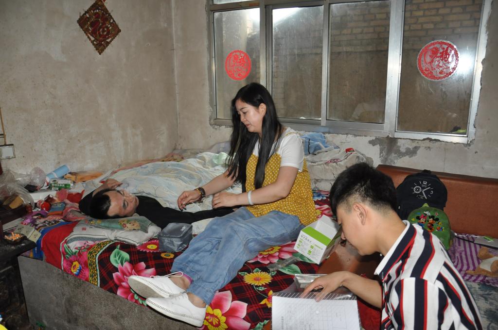医疗志愿者为员工家长进行身体检查