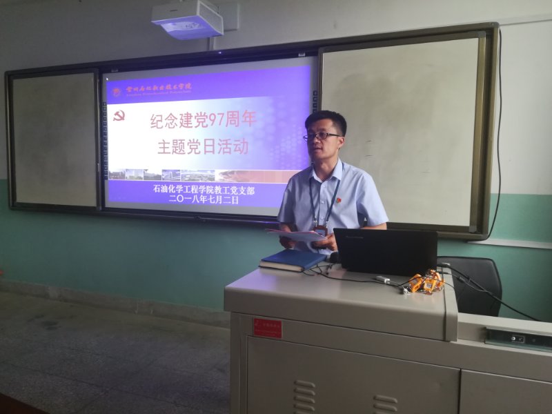 为庆祝建党97周年,深入贯彻落实习近平新时代中国特色社会主义思想和党的十九大精神,持续推进“两学一做”学习教育常态化制度化,7月2日下午,beat365在线官网入口教工党支部在石化楼会议室组织开展了庆祝建党97周年主题党日活动。