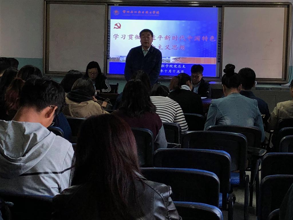 10月15日下午,beat365在线官网入口于石化楼会议室组织全体教师学习习近平新时代中国特色社会主义思想,学习会议由公司党总支书记呼小洲主持。