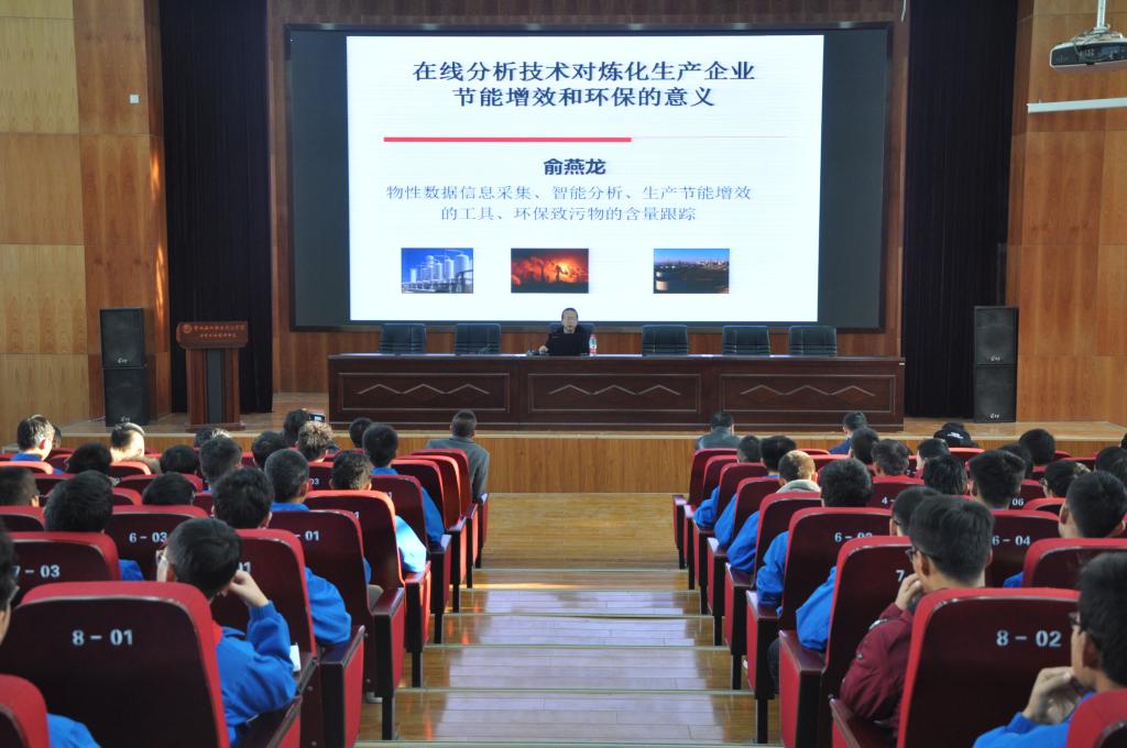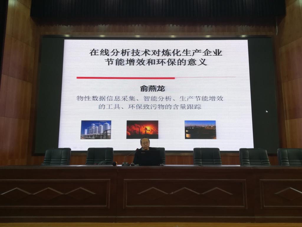 讲座开始,焦宏林对俞燕龙做了简单的介绍。随后俞燕龙根据现在社会科技的发展为我们介绍了四种在线分析技术:在线核磁分析技术、在线近红外分析技术、在线激光分析技术、在线硫氯分析技术。在简单给员工们介绍了基本的分析方法与仪器之后,还告诉了员工们对于不同材料的分析适用于那种分析技术。接着俞燕龙介绍了NMRA在线分析系统应用装置,以及一些其他常用仪器,告诉了员工们仪器的基本原理以及使用方法。紧接着俞燕龙介绍了一些原油调合方法以及其经济前景,告诉了员工们仪器的重要性以及国内分析仪器与国外仪器的差距。最后焦宏林老师对此次讲座做了总结,阐述了在线质量仪表在炼油化工行业的重要性以及同学们广阔的就业前景,并感谢俞燕龙副的精彩讲座。