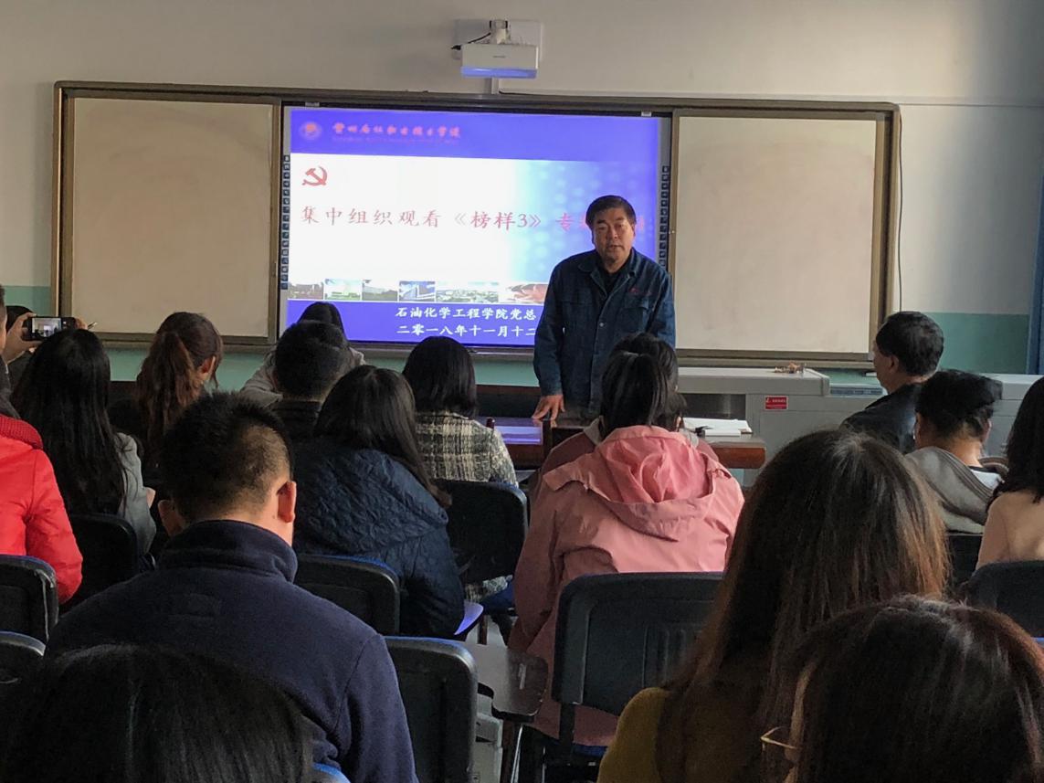 11月12日下午,beat365在线官网入口于石化楼会议室组织全体教师观看《榜样3》专题节目,并进行了学习交流讨论,学习会议由石化院党总支书记呼小洲主持。