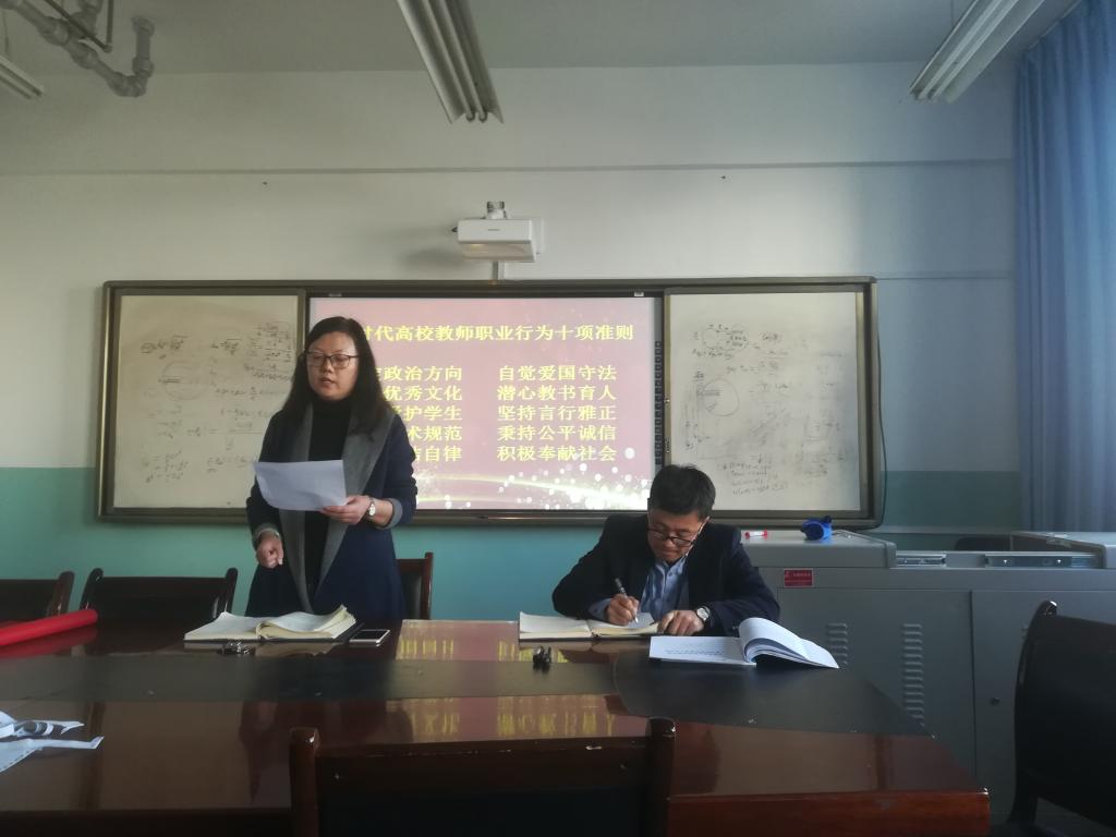 会上,beat365在线官网入口经理李薇按照教育部、省教育厅和公司相关文件精神的要求,带领大家共同学习了《新时代高校教师职业行为准则》、《教育部关于高校教师师德失范行为处理的指导意见》等。随后组织教师进行了庄严的宣誓,并在横幅上进行了签字。
