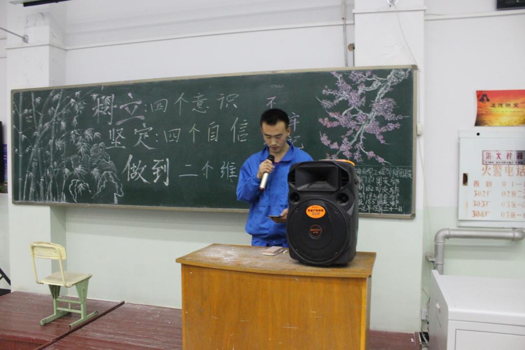 随着各班主持人的报幕结束,员工们集体齐唱《公国共青团团歌》,之后同学们围绕着以“四个意识”“四个自信”为中心在上台展示精心准备的节目。同学们在网上查抄学习习近平系列重要讲话、将自己独特见解相结合,写出演讲稿与诗歌,并在讲台上朗诵。“四个意识”指大局意识、政治意识、核心意识、看齐意识,“四个自信”指中国社会特色主义道路自信、理论自信、制度自信、文化自信。同学们以激昂高亢的演讲及朗诵展现出对努力做到有信念、讲规矩、有纪律、有作为的青年分子,每个节目都展现出同学们对此次活动的重视。