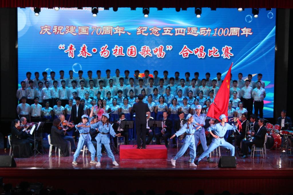 为庆祝建国70周年,纪念五四运动100年,弘扬爱国精神。兰州石化职业技术公司于4月29日在东区礼堂举办“青春·为祖国歌唱”合唱比赛,beat365在线官网入口“音为梦响”合唱团参加此次比赛。