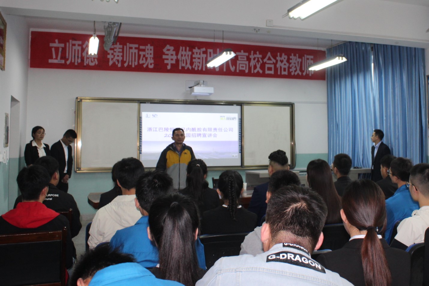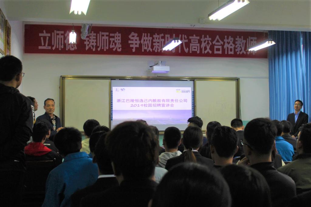5月5日下午四点二十,浙江巴陵恒逸己内酰胺有限责任公司代表刘拥军及公司人员在石化楼309会议室举行了企业招聘宣讲会,石化公司、应化公司相关专业的2020届毕业生参加了此次企业宣讲会。