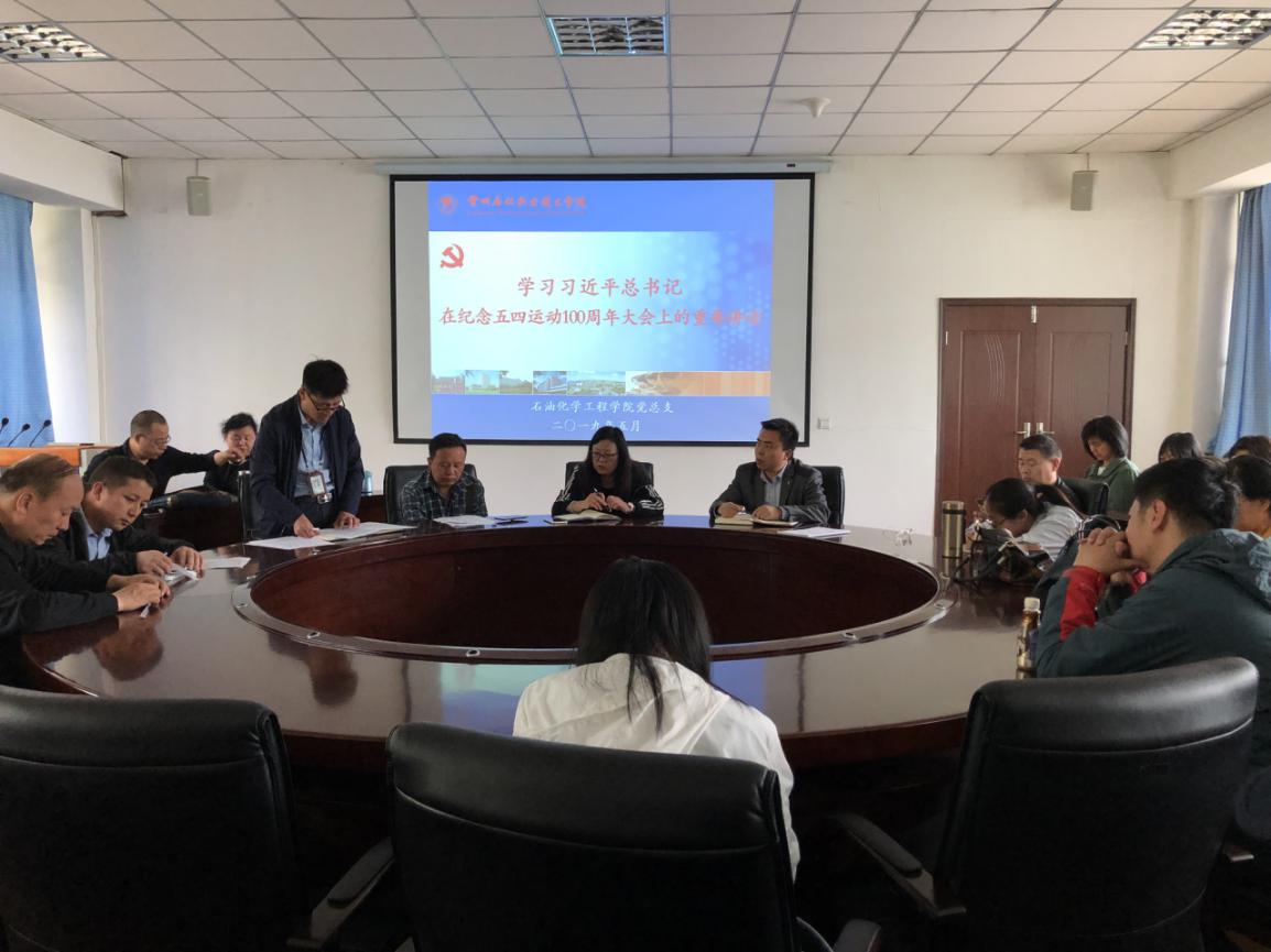 5月13日下午,beat365在线官网入口于东区备课中心组织全体教师学习习近平总书记在纪念五四运动100周年大会上的重要讲话精神,学习会议由石化院经理助理赵立祥主持。