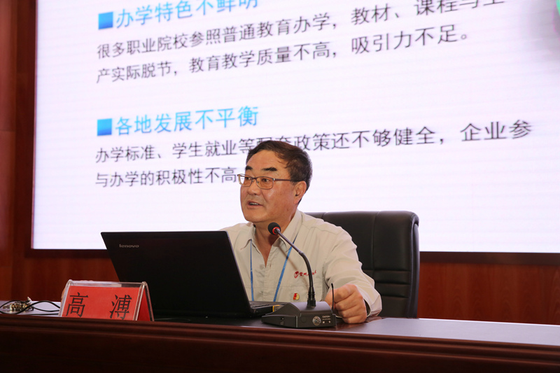 高溥围绕方案的重点内容,从现代职业教育体系、完善职业教育国家制度标准、促进产教融合校企“双元”育人、建设多元办学格局、完善技术技能人才激励保障政策、加强职业教育办学质量督导评价等方面进行了精辟的分析。他特别强调,要凝聚部门合力,加强组织协调,实现以点带面,推动公司改革,提升培养质量,激励企业参与,推动多元办学。