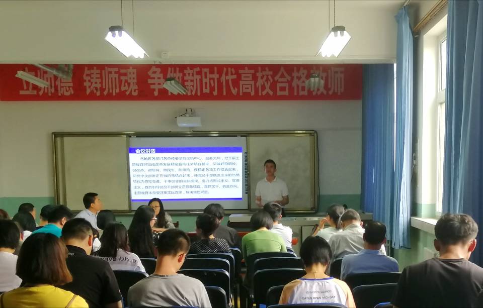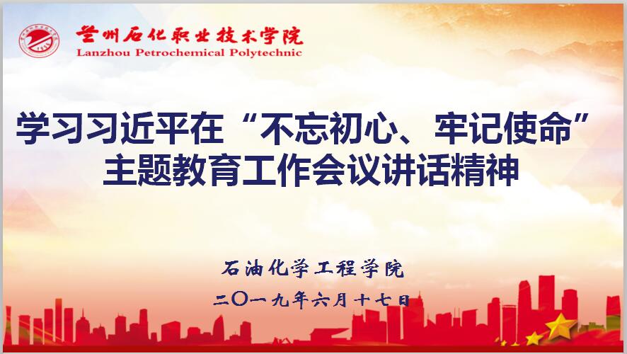 6月17日下午,beat365在线官网入口于石化楼会议室组织全体教师学习习近平总书记在“不忘初心、牢记使命”主题教育工作会议上的重要讲话精神,学习会议由石化院办公室副主任席满意主持。