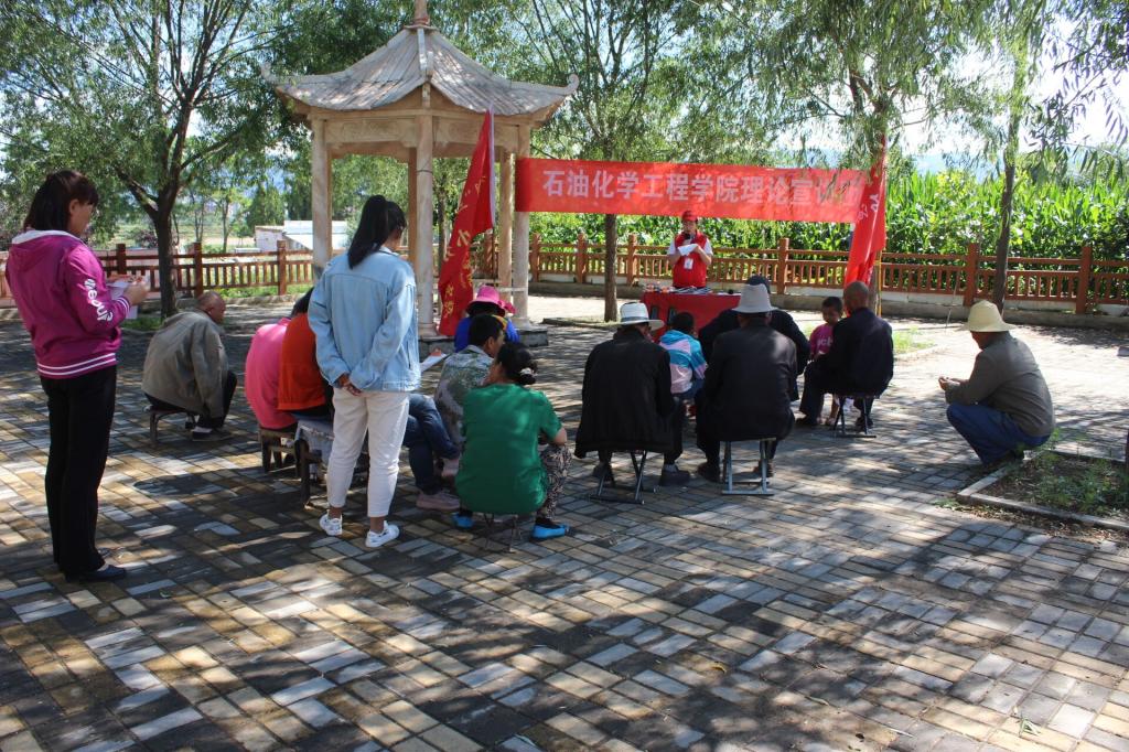 为深入学习贯彻习近平新时代中国特色社会主义思想和党的十九大精神,引导公司员工积极投身全面建成小康社会伟大实践,在实践活动中深刻感受新中国成立70周年所取得的伟大成就以及深刻领会习近平总书记在纪念五四运动100周年大会上的重要讲话精神,为新农村建设做好广泛宣传,并在实践中成长为有理想、有本领、有担当的新时代青年。2019年7月8日至7月12日,beat365在线官网入口积极响应公司号召,成立“beat365在线官网入口理论普及宣讲团”,组织师生赴兰州市榆中县龚家屲村组织开展了以“青春心向党建功新时代”为主题的暑期三下乡社会实践活动。本次活动由beat365在线官网入口赵立祥、席满意、李胜泥和马克思主义公司叶婷四位老师带领7名优秀同学组成三下乡小分队,活动重点围绕习近平新时代中国特色社会主义思想和党的十九大精神,开展宣讲报告、学习座谈、调查研究、政策宣传、视频播放等形式多样的社会实践活动。